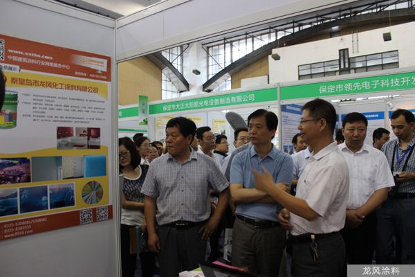 2014.7河北省住建廳舉辦的新材料新技術(shù)唐山展會上省有關(guān)領(lǐng)導(dǎo)參觀龍風(fēng)涂料展廳
